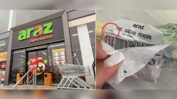 “Araz” supermarketdən alınan məhsulla bağlı sosial şəbəkələrdə məlumat paylaşılıb. Avtosfer.az xəbər verir ki, bir müştəri iyulun 10-da “Araz” marketin Elşən Süleymanov küçəsində yerləşən filialından holland və saçaq pendiri aldığını bildirib. Onun sözlərinə görə, aldığı holland pendiri xarab çıxıb. Bundan sonra müəyyən şübhələr yaranıb. O, saçaq pendirinin üzərindəki qablaşdırma tarixini göstərən etiketi çıxararkən, altında daha əvvəlki – 17 iyun tarixi yazılmış köhnə bir etiketin olduğunu aşkar edib. Müştəri iddia edir ki, saçaq pendirinin tarixini dəfələrlə dəyişərək satışa çıxarıblar. Həmçinin qeyd edir ki, saçaq pendirindən hamilə qadın istifadə etdikdən sonra halı pisləşib. Bu isə məhsulun keyfiyyəti və təhlükəsizliyi ilə bağlı ciddi narahatlıq doğurub.