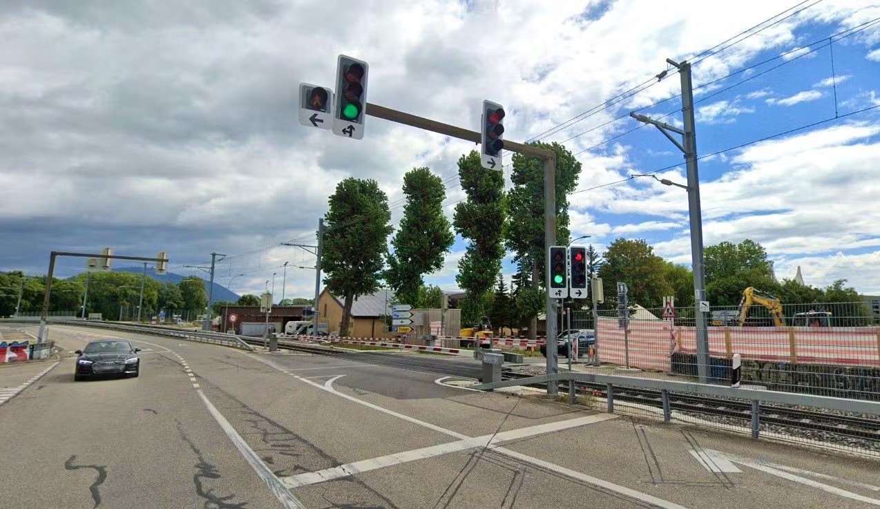 Svetoforun quraşdırıldığı yol ayrıcında məktəb və idman kompleksi yerləşir. Yol boyunca isveçrəlilərin sevimli nəqliyyatı olan tramvay xətti keçir. Svetofor tramvaya yol açır, məktəbdən və idman zalından çıxan piyadaların təhlükəsiz keçidini təmin edir. Yalnız bundan sonra, avtomobillərə növbə çatır. Bəzi sürücülər səbri çatmadığı üçün qırmızı işıqda keçir.