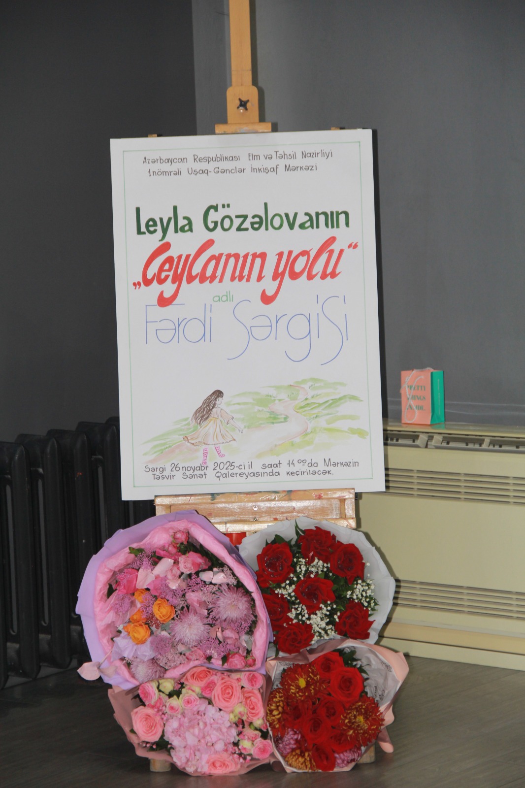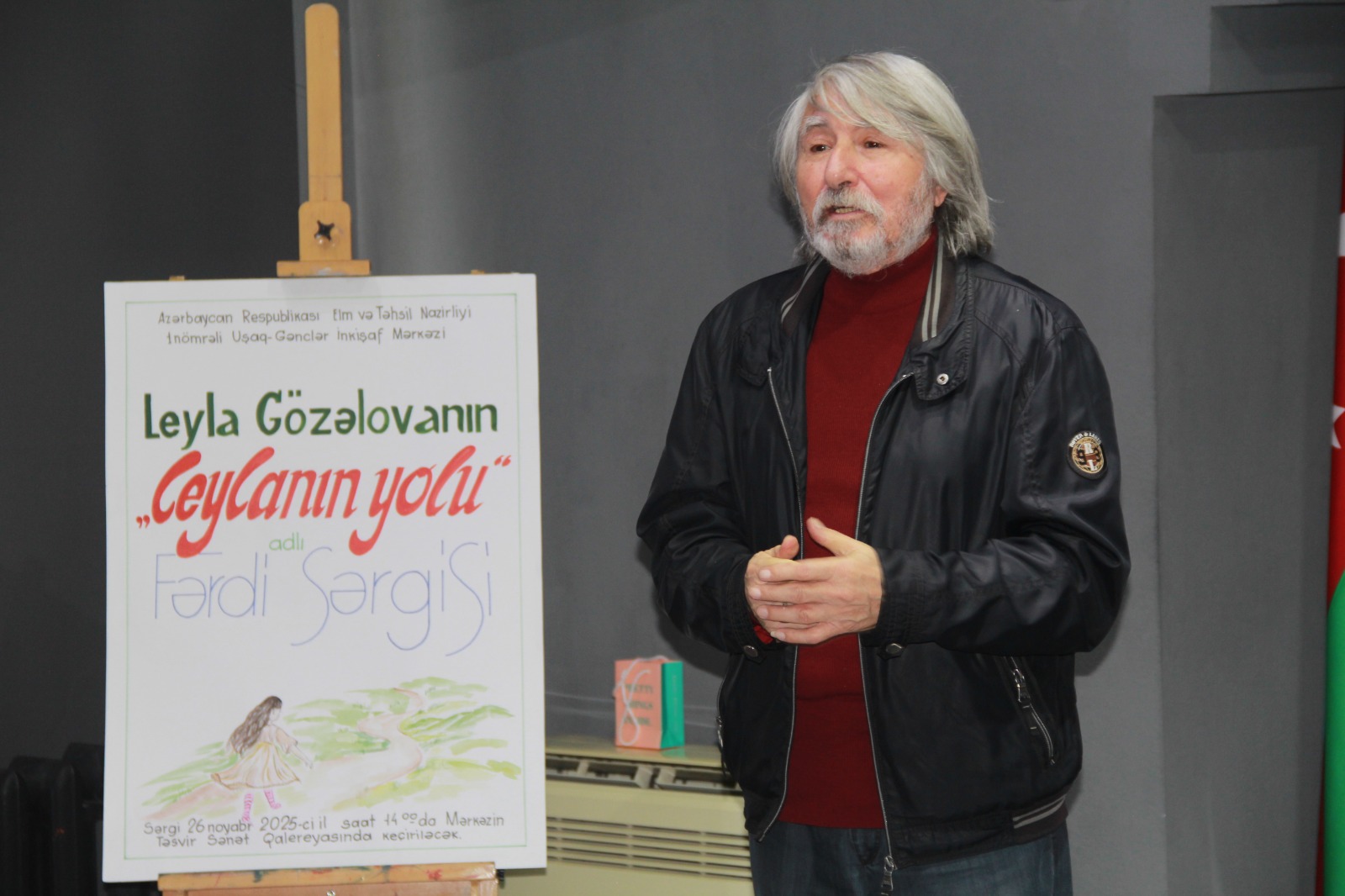 Sərgidə Mərkəzin direktoru Kəmalə Abdullayeva çıxış edərək Leylanın istedadından,