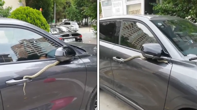 Avtomobildə dörd saat ilanla səyahət: Ailə şok keçirdi - VİDEO