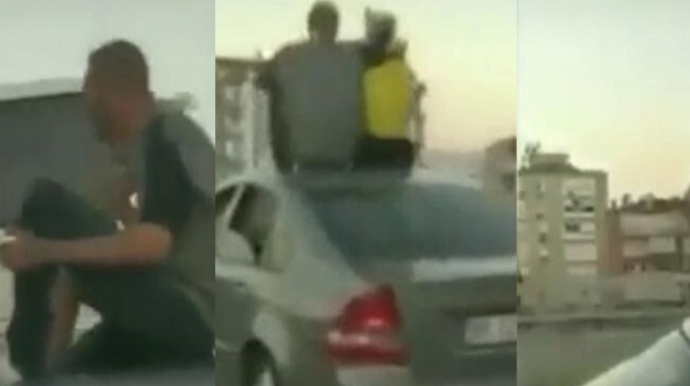 Kadrlarda, 09 LZ 840 qeydiyyat nömrə nişanlı “Mercedes” maraklı minik avtomobilinin hərəkətdə olduğu və sürücü ilə sərnişinin lyukdan çıxaraq maşının damında oturduğu görülür.