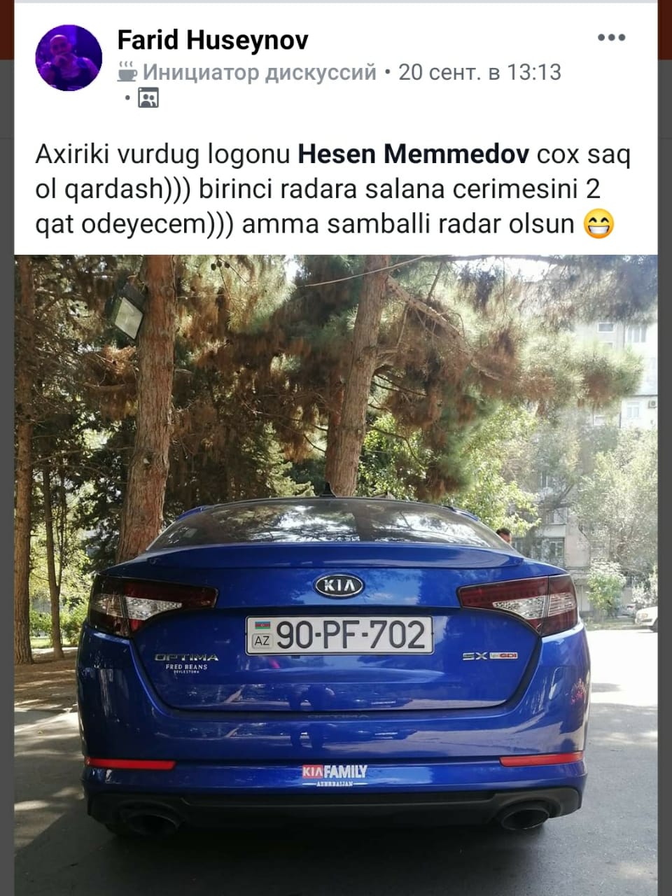 Avtosfer.az xəbər verir ki, Fərid Hüseynov sosial şəbəkədə “Kia Family Azerbaijan” qrupundan avtoxuliqanlıq əməllərini özündə əks etdirən video paylaşaraq “Bəsdir məni radara saldınız. Sizin radara düşməyim deyə DYP-nin radarına düşürəm” başlığında video paylaşıb. Videonun başlığında şəxs etdiyi əməli rahatlıqla etiraf edir. Kadrlara diqqət etdikdə, adıçəkilən sürücü hərəkətin intensiv zamanı, davamlı şəkildə ilanvari və olduqca təhlükəli manevrlər edərək, ictimai qaydanı və əhalinin dincliyini, yol hərəkəti qaydalarının müxtəlif üsullarla davamlı olaraq pozur və hərəkətin digər iştirakçılarına təhlükəli anlar yaşadır.