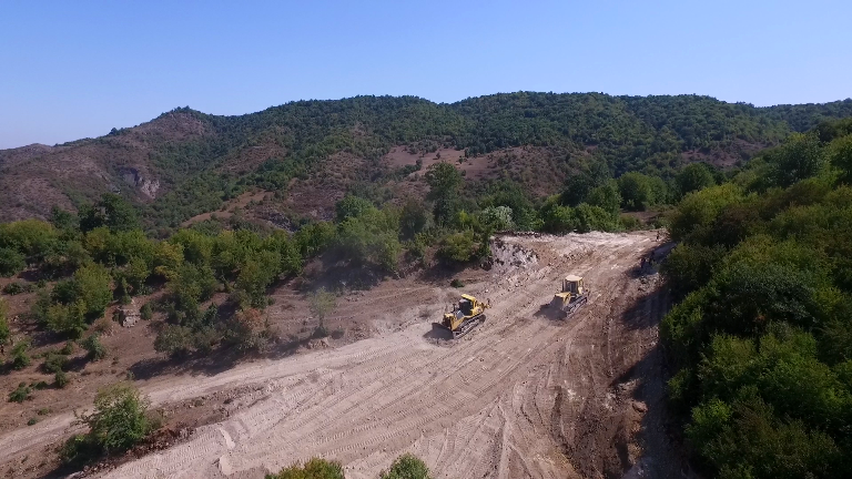 Azərbaycanda yol çəkilişi zamanı dağı belə partlatdılar - VİDEO