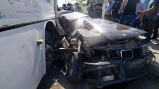 Bakıda ağır yol-nəqliyyat hadisəsinin videosu yayılıb. Hadisə dünən Suraxanı rayonu, Hövsan qəsəbəsində qeydə alınıb. 132 nömrəli xətt avtobusu BMW markalı avtomobillə toqquşub. Nəticədə avtomobilə ciddi ziyan dəyib.