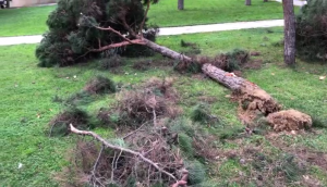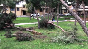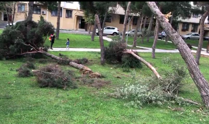 Bakıda "Kamaz" parka girdi, ağacları məhv etdi - VİDEO