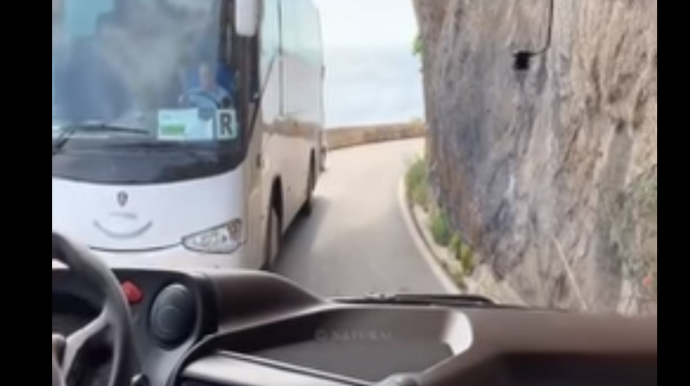 Təqdim etdiyimiz bu kadrlar İtaliyanın Amalfi sahil yolunda qeydə alınıb. Avtosfer.az xəbər verir ki, kadrlarda, birtərəfli dar yolda sürücülərin təmkin və səbir göstərərək bir-birlərinə yol verdikləri görülür.