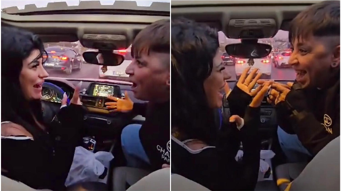 Əlini sükandan çəkən qadın sürücü sərnişinlə ağız-ağıza verib mahnı oxudu - VİDEO