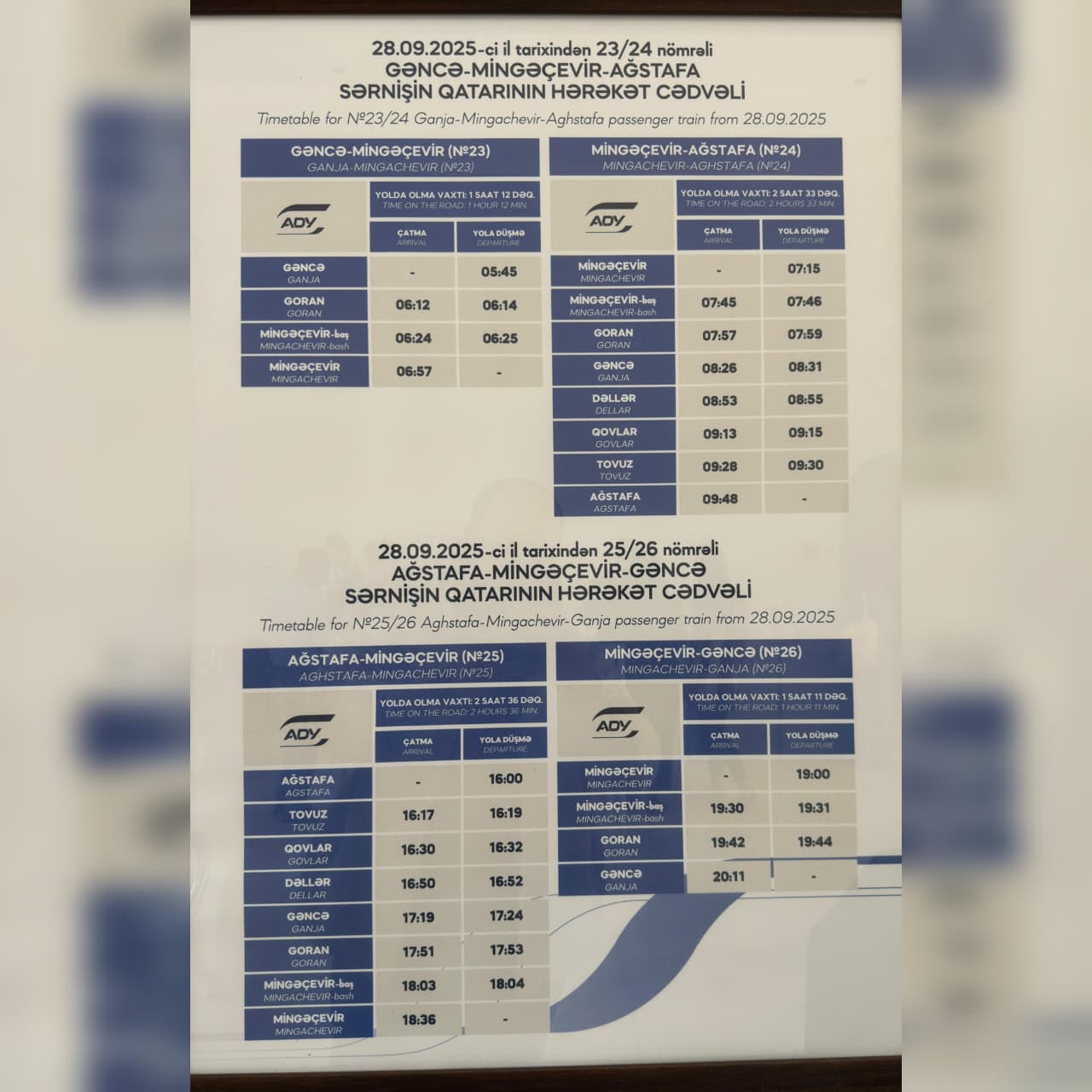 Avtosfer.az xəbər verir ki, Azərbaycanda dəmir yollarının yaranmasının 145 illiyi ərəfəsində – sentyabrın 28-dən etibarən müasir elektrik qatarları ilə Gəncə–Mingəçevir–Ağstafa marşrutu üzrə gündə 2 dəfə sərnişinlərə xidmət göstəriləcək.