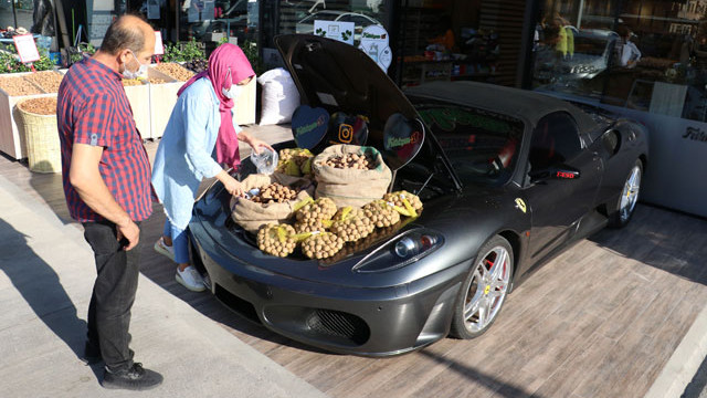 Məlumata görə, avtomobil salonu olan Abdullah Duman, 10 gün əvvəl yeni qoz-fındıq dükanı açıb. Duman, salondakı 1,5 milyon (337,650 manat) lirəlik yeni “Ferrari” markalı avtomobili mağazanın qarşısana park edərək, baqajındakı kisələrlə və torbalarla qozu satmağa başlayıb. Kilosu 30 lirəyə satılan qozlardan daha çox, lüks avtomobil diqqəti çəkib.