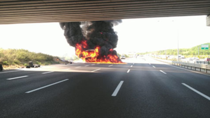 Türkiyənin İstanbul şəhərində sərnişin avtobusu yanıb. Avtosfer.az DHA-ya istinadən xəbər verir ki, hadisə avqustun 11-də yerli saatla 17:30-da “Şimal Marmara” avtomagistralının Çekmeköy rayonundan keçən hissəsində baş verib.