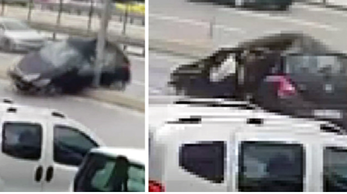 Kadrlarda qara rəngli avtomobilin hərəkətin sıx olduğu yolda nəqliyyat vasitələrinin arası ilə sağ-sol edərək sürətlə irəlilədiyi və bir müddət sonra sürücünün idarəetməsindən çıxdığı görülür. Avtomobil əvvəlcə zolaqayrıcına, ardınca işıq dirəyinə çırpılır.
