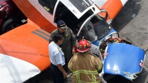Təyyarə avtomobilin üstünə düşdü: 2 pilot xəsarət alıb – VİDEO