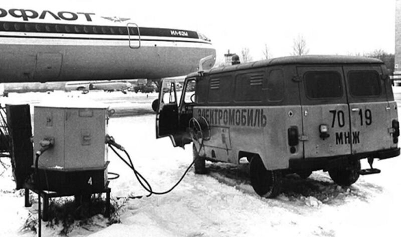 1959-cu ildə Ulyanov Avtomobil Zavodunun mühəndisləri UAZ-450-nin bazasında UAZ-450EM elektromobilini hazırladılar. Az sayda hazırlanan bu model aerodromlarda xidmət üçün nəzərdə tutulmuşdu. Elektrikdoldurma məntəqəsinin əks olunduğu foto 1960-cı ilin qışında keçmiş SSRİ-nin aerodromlarından birində çəkilib.