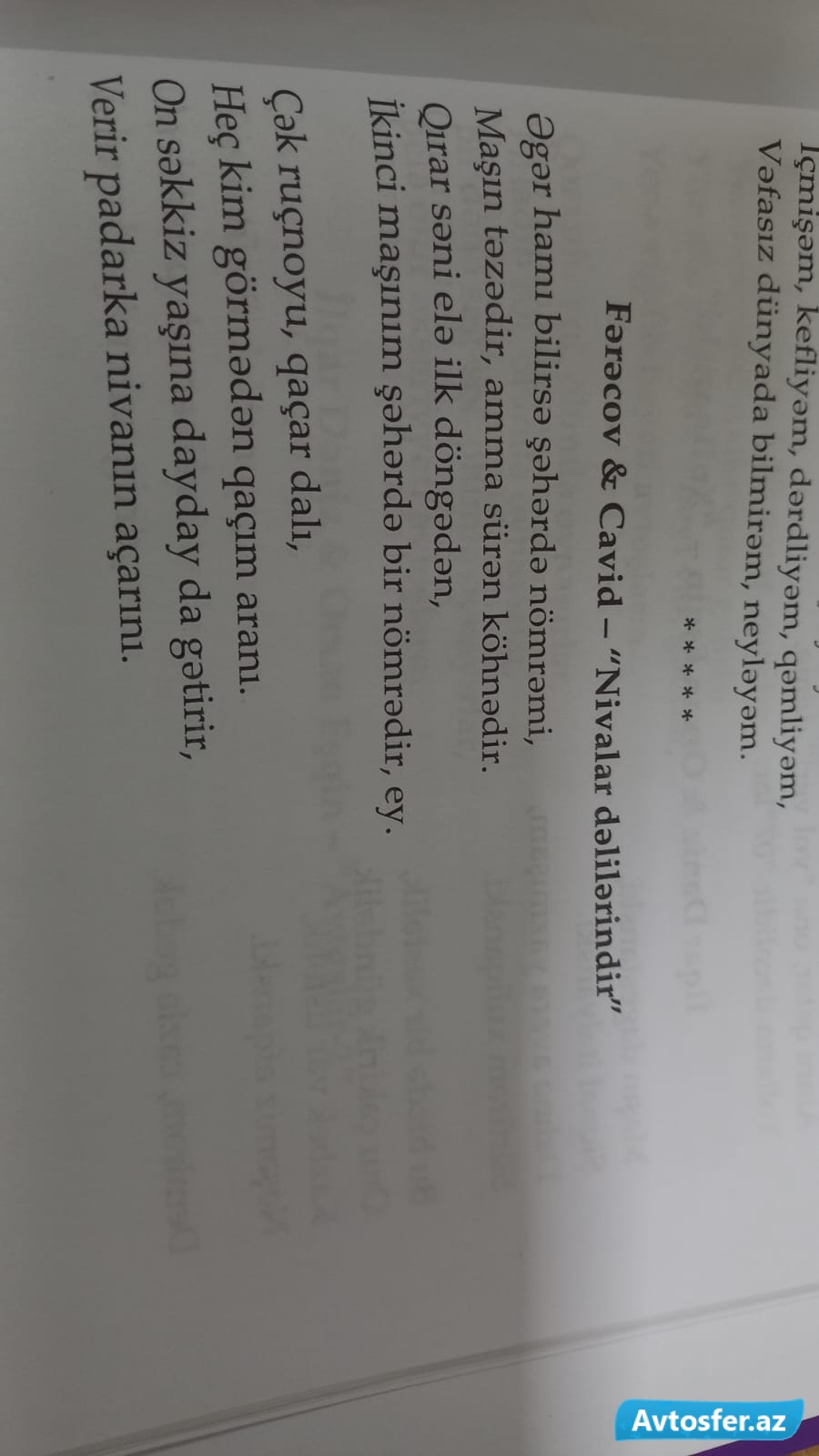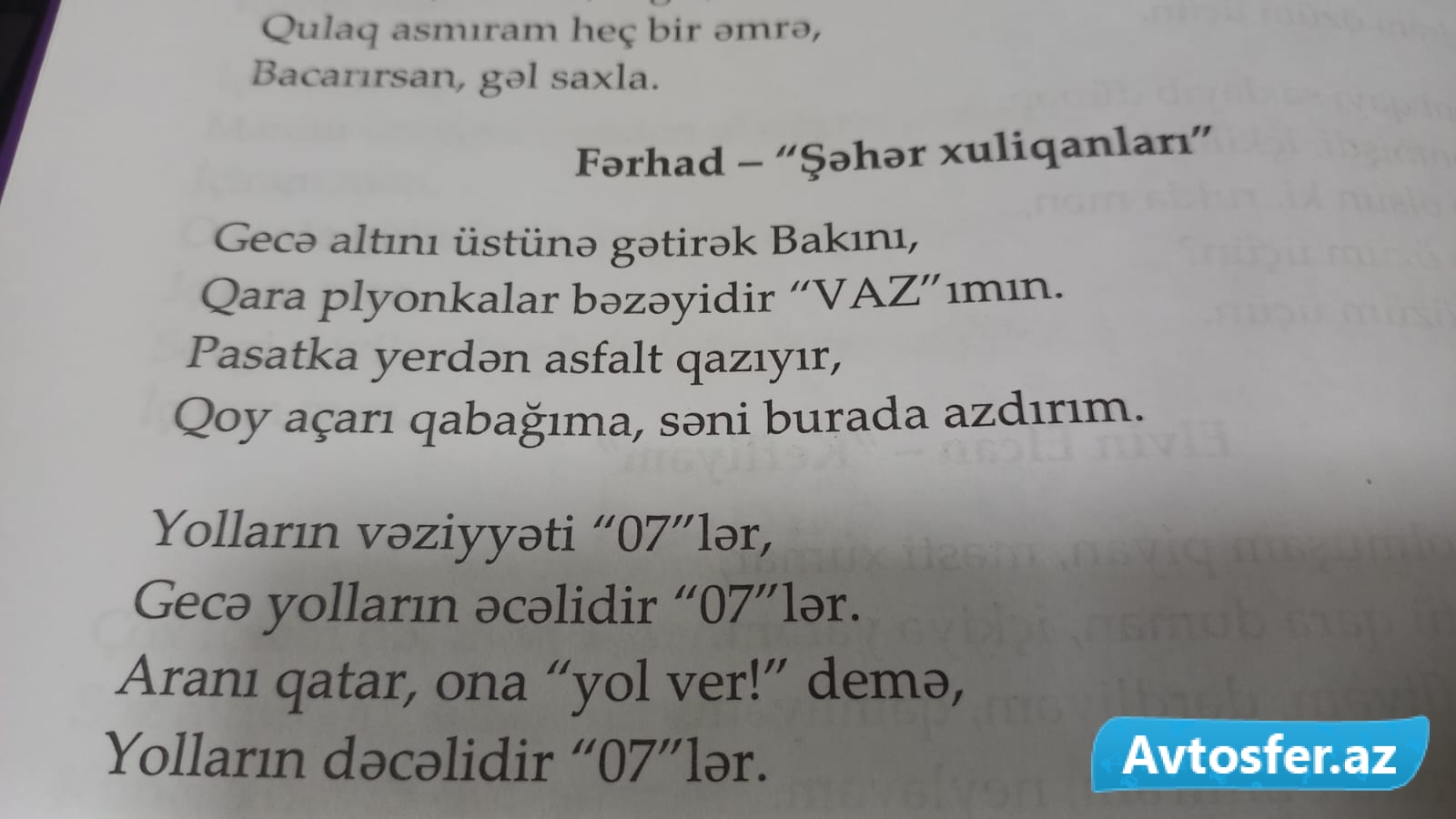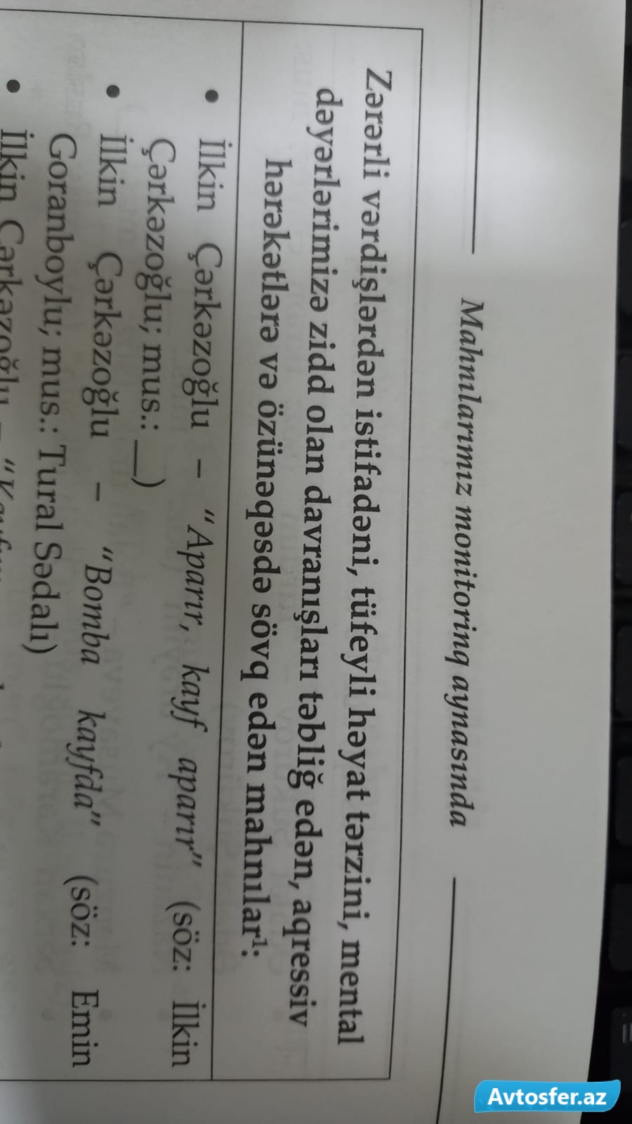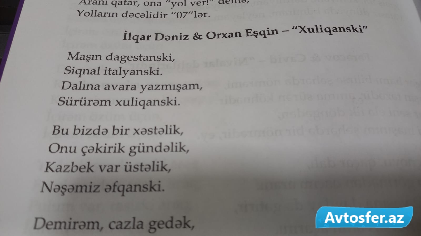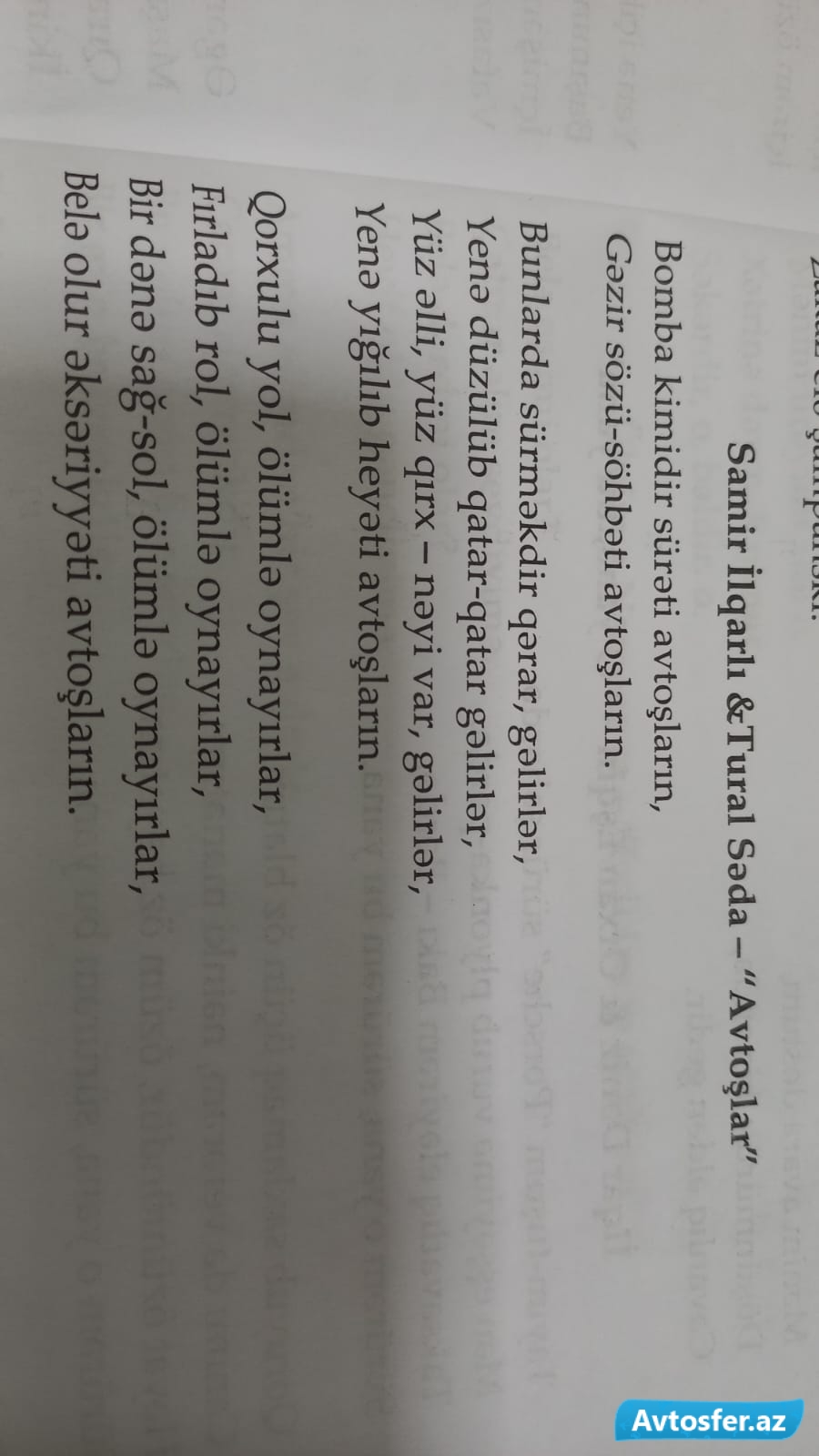 Avtosfer.az-ın xəbərinə görə, siyahı "Mahnılarımız monitorinq aynasında" adlı kitabda öz əksini tapıb. Bu siyahıda yer alan mahnılar arasında "avtoş"lara həsr edilənlər də var: