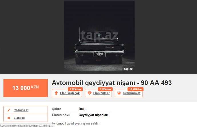 Azərbaycanda 22 manatlıq nomrə - 55 min manata satılır