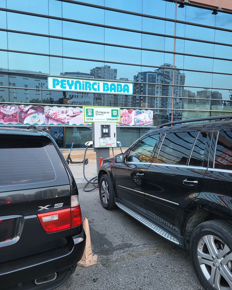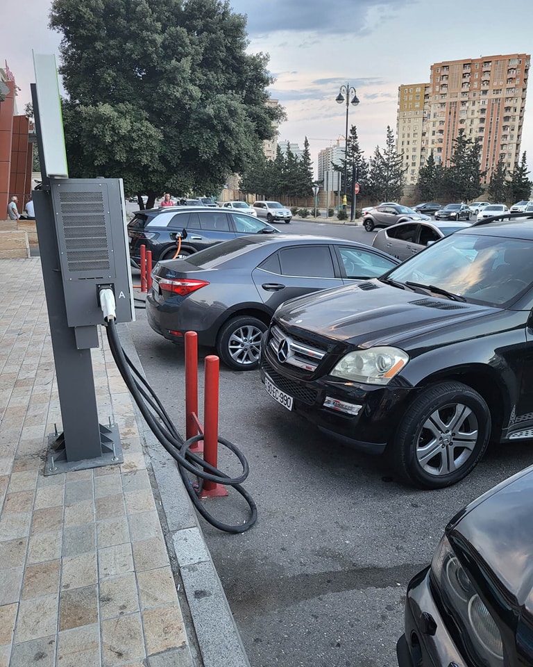 İlk iki foto “Baku Mall”un qarşısında çəkilib. Amma yolun kənarında saxlanılan maşınlar elektrik avtomobillərinə enerji doldurucu aparatdan istifadə etməyə imkan vermir.