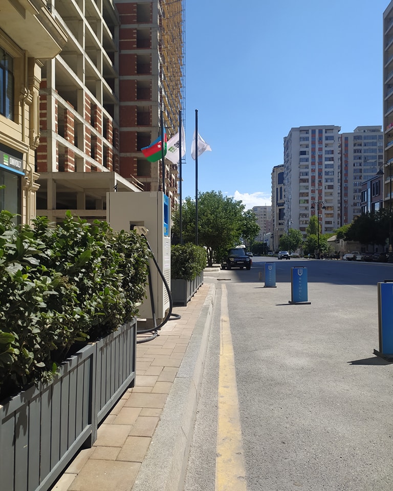 İkinci foto isə Ceyhun Hacıbəyli küçəsində çəkilib. Burada isə elektromobillərin enerji doldurucu aparatdan rahat istifadəsi üçün digər maşınların park edilməsinin qarşısı alınıb.