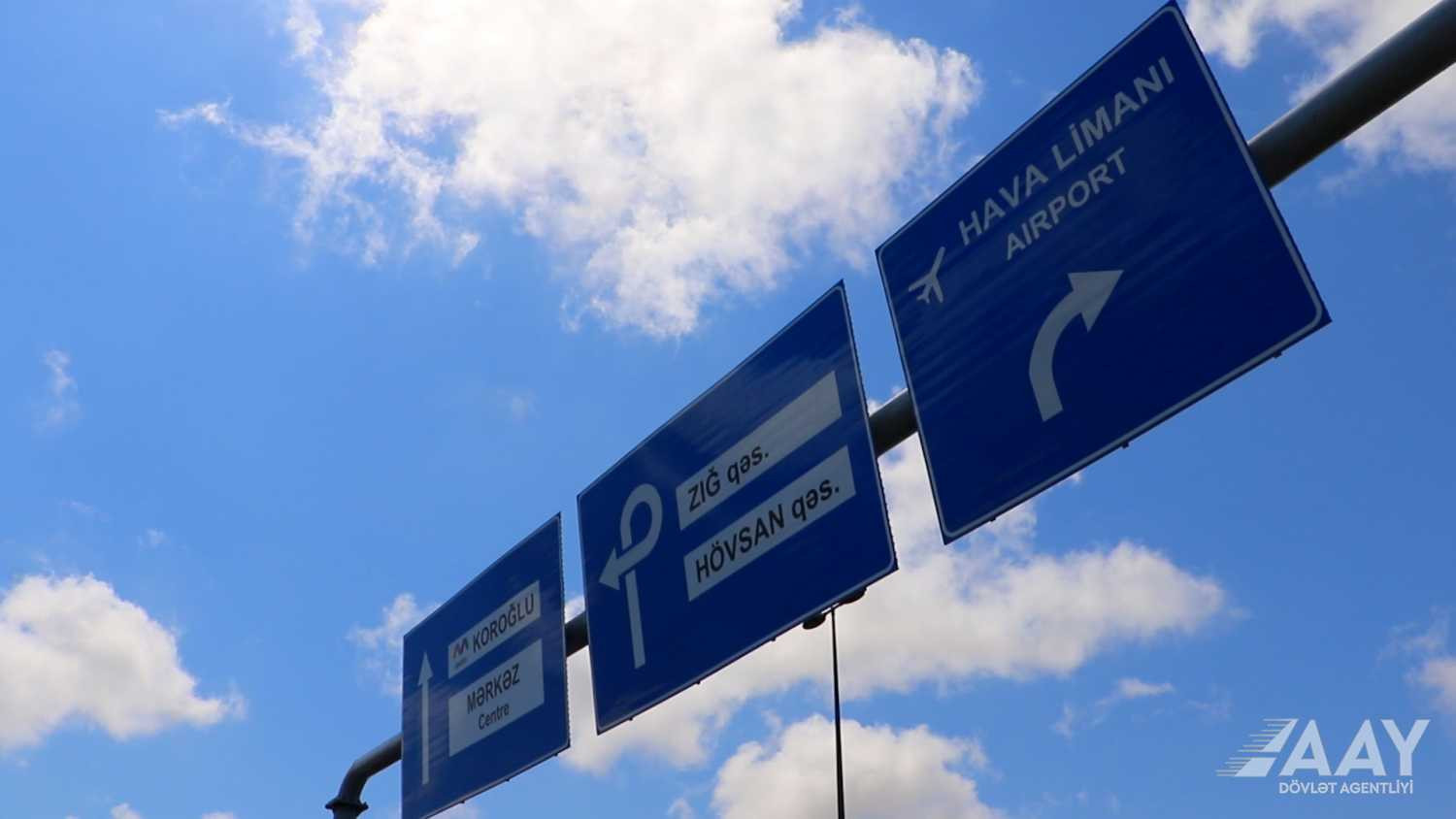 Heydər Əliyev prospektinin 21.4-cü km-lik hissəsində, şəhər istiqamətində və Heydər Əliyev adına Beynəlxalq Hava Limanı istiqamətində ( Hava limanının qarşısı) P tipli istiqamətverici lövhələr quraşdırılıb.
