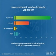 Bildirək ki, sorğuya cəlb edilmiş respodentlərin 68%-i kiçik həcmli, 26%-i iri həcmli, 1%-i yük avtomobillərinə üstünlük verib.