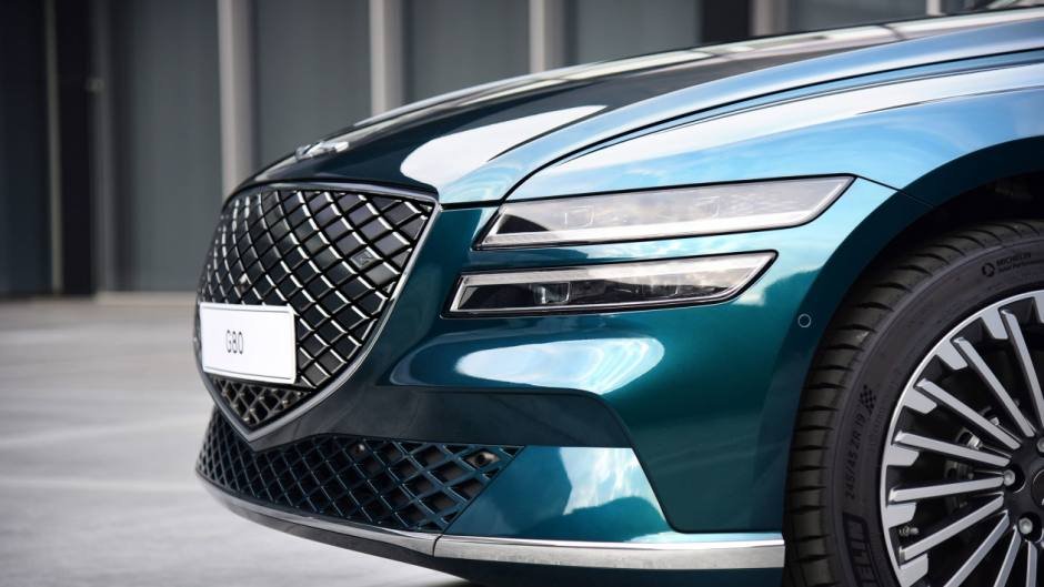 Zahiri cəhətdən Genensis G80 elektrokarı benzin və dizel versiyalarından yalnız başqa bamperləri, radiator barmaqlığını əvəzləmiş bənzər dizayna malik olan bağlı panel və səsboğucu sisteminin çıxış borularının olmaması ilə fərqlənir. Üstəlik, elektrik terminalına qoşulma nöqtəsinin lyuku ön qanadda deyil, “radiator barmaqlığında” yerləşir.