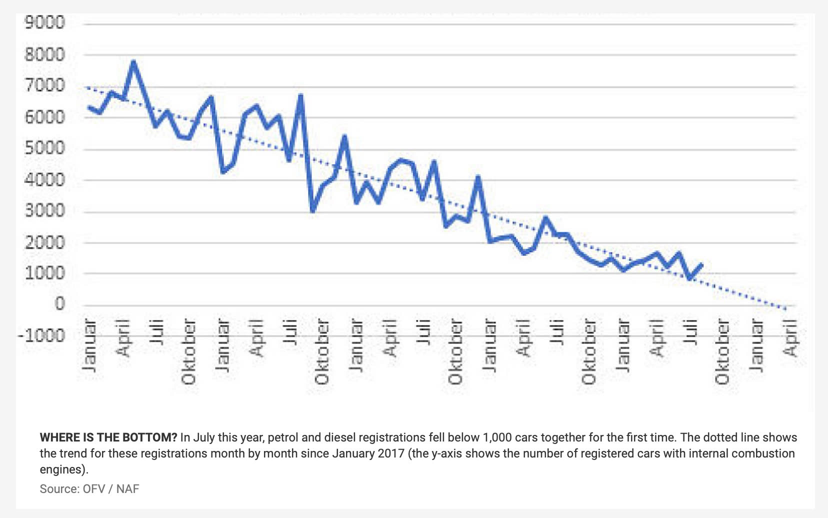 Avropa ölkələri daxili yanma mühərrikini 2035-ci ildə qadağan etnək istəsə də, Norveçdə son müddət 2025 müəyyən edilib. Proqnoza görə gələn ildən ölkədə ənənəvi avtomobillərin satışı üçrəqəmli ədədə düşəcək və dilerlər üçün sərfəli olmayacaq.