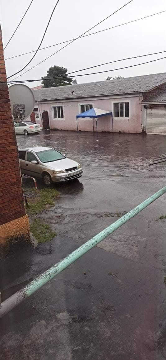 İntensiv yağan leysan səbəbindən Zaqatala şəhərində küçələri sel basıb.