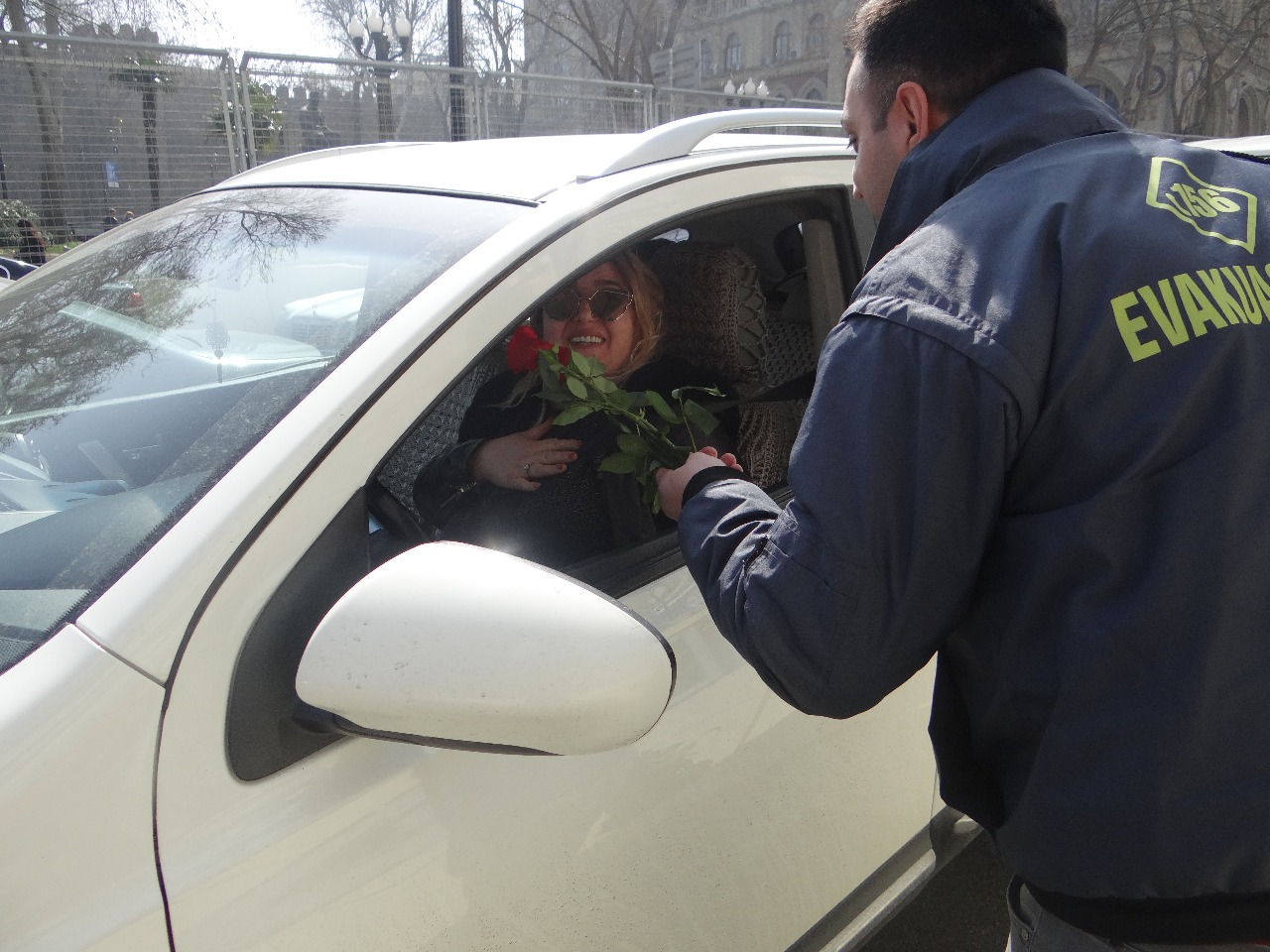 Azərbaycanın ən böyük və ən peşəkar evakuasiya və yükdaşıma xidməti olan 156 və 166 xidmətləri 8 Mart Beynəlxalq Qadınlar Günü münasibətilə paytaxt küçələrində maraqlı aksiya keçirib. Avtosfer.az xəbər verir ki, 156 evakuasiya və 166 yükdaşıma xidmətinin əməkdaşları Bakının mərkəzi küçə və yollarında, eləcə də parklarda xanım sürücü və piyadalara hədiyyə paylayıb. Aksiya zamanı azyaşlılar və şəhərimizə gələn xanım turistlər də hədiyyəsiz qalmayıb.