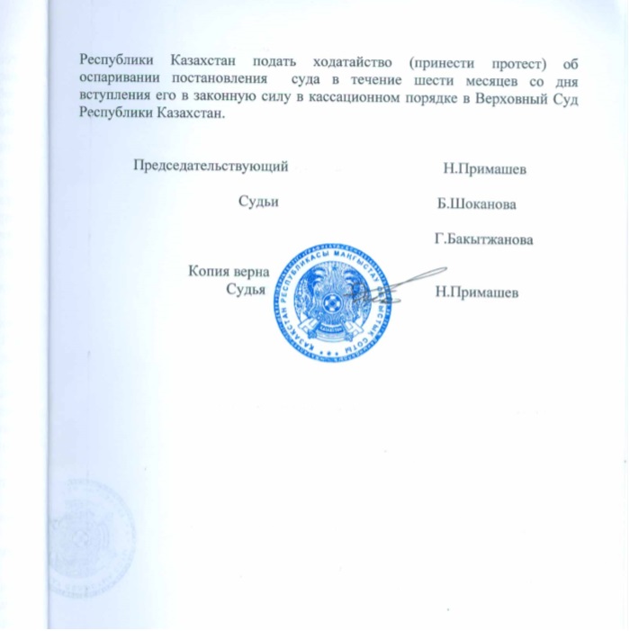 Görünür bu şəxslər üçün öz şəxsi maraqları nəinki Azərbaycan qanunlarından, hətta beynəlxalq hüquq və qanunlardan da üstündür. Buna baxmayaraq, aldığımız məlumata görə AR Konstitusiya Məhkəməsi Qazaxstan Respublikası Məhkəməsi Qətnaməsinin tanınması ilə bağlı AR Ali Məhkəməsinin qanunsuz qərarından verilmiş şikayəti artıq icraata götürmüş və əminik ki, yaxın günlərdə bu işə hüquqi qiymət verəcəkdir.
