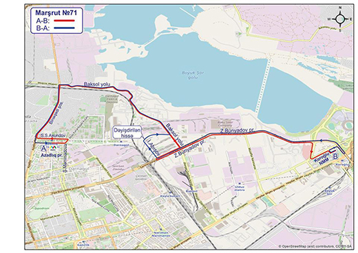Bakı Nəqliyyat Agentliyi (BNA) aparılan optimallaşdırılma və çoxsaylı vətəndaş müraciətlərini nəzərə alaraq, 51, 71, 139 və 204 nömrəli müntəzəm marşrut xətləri üzrə avtobusların hərəkət sxemində dəyişiklik edib. Qurumdan Avtosfer.az-a verilən məlumata görə, 51 nömrəli marşrut xətti üzrə hərəkət sxemində edilən dəyişikliklə avtobusların Rüstəm Rüstəmov-Bəkir Çobanzadə-Mehdi Abbasov-İmadəddin Nəsimi küçələrindən keçməsi təmin ediləcək. Bundan başqa, 71 nömrəli marşrut xətti üzrə avtobuslar Koroğlu Nəqliyyatı Mübadilə Mərkəzindən Ziya Bünyadov prospekti istiqamətində hərəkət edərkən Dərnəgül 1 yoluna (Baksol yoluna) İslam Abışov küçəsindən keçməklə çıxacaq.