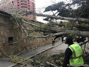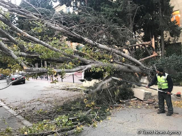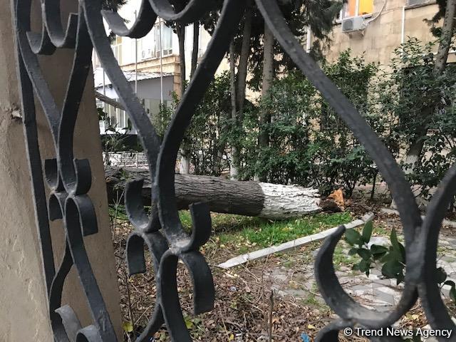 Bakıda Məhəmməd Naxçıvani küçəsində güclü külək təxminən 10 metr hündürlüyündə ağacı aşırıb. Avtosfer.az-ın Trend-ə istinadən verdiyi məlumata görə, hadisə Daxili İşlər Nazirliyinin Baş Mühafizə İdarəsinin yaxınlığında baş verib. İrigövdəli ağac yaxınlıqdakı restoranın üzərinə aşıb. Nəticədə restoranın dam örtüyü yararsız vəziyyətə düşüb.