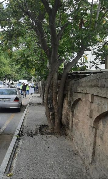 Xətai prospekti, Bakı Dəmiryol Vağzalının yaxınlığında ağacların dibi asfaltlanıb.