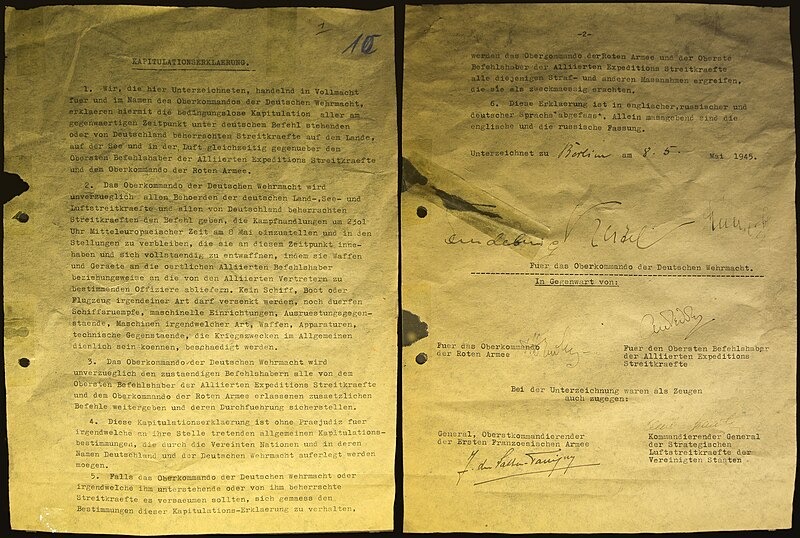 Almaniyanın danışıqsız təslim olması barədə akt Berlində mayın 8-də saat 23.01-də (Mərkəzi Avropa vaxtı) imzalanıb. Həmin gün Moskvada artıq 9 may saat 01.01 idi. Bir sözlə, fərq saat qurşağı ilə əlaqədardır və siyasətlə əlaqəsi yoxdur.