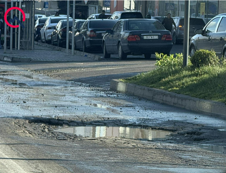Belə ki, yolun hərəkət hissəsinin ümumi istifadədə olan nəqliyyat vasitələri üçün ayrılmış zolağında 1 metr diametrli çala formalaşıb. Suyun bura dolması ilə çala daha da genişlənib və təhlükəli vəziyyət yaradıb. Nəticədə avtobuslar bu çalaya düşməmək üçün zolaqdan çıxmalı olur ki, bu da öz zolaqları ilə hərəkət edən digər avtomobillərə risk yaradırlar.