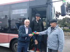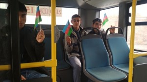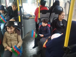 Avtobusda uşaqlara bayraq payladılar - FOTO