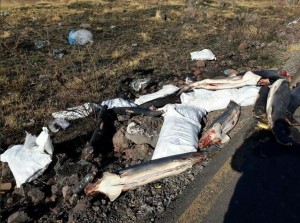 Balıqların cəsədi maşın yoluna tökülmüş vəziyyətdə olub