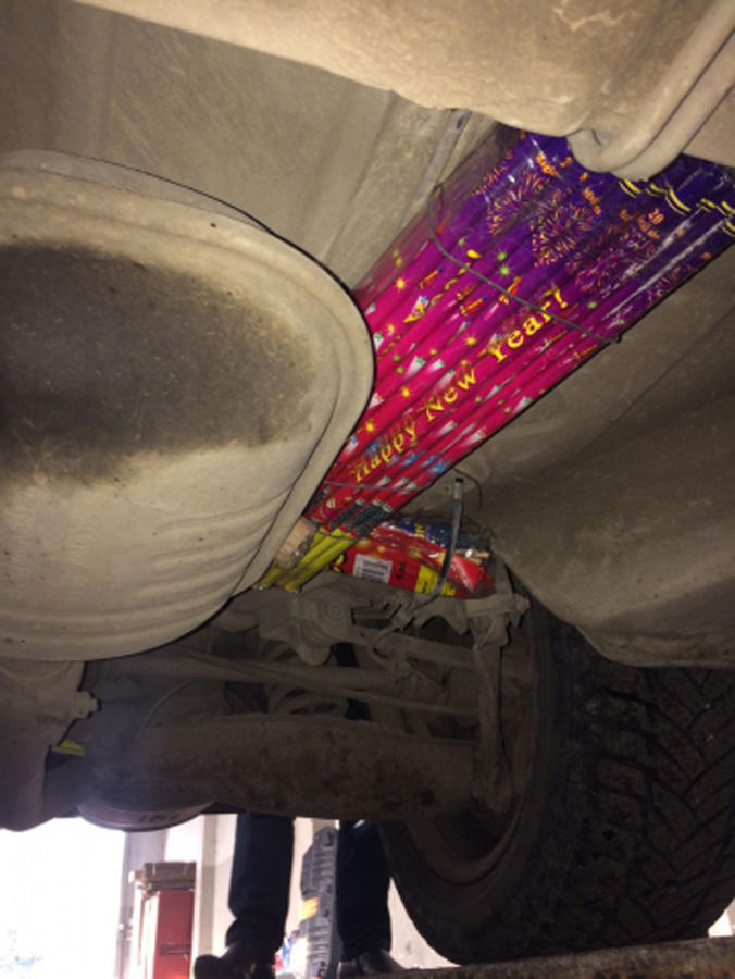 Yoxlama zamanı avtomobildən gömrük nəzarətindən gizlədilən 3 424 ədəd pirotexniki vasitələr aşkar edilərək götürülüb.