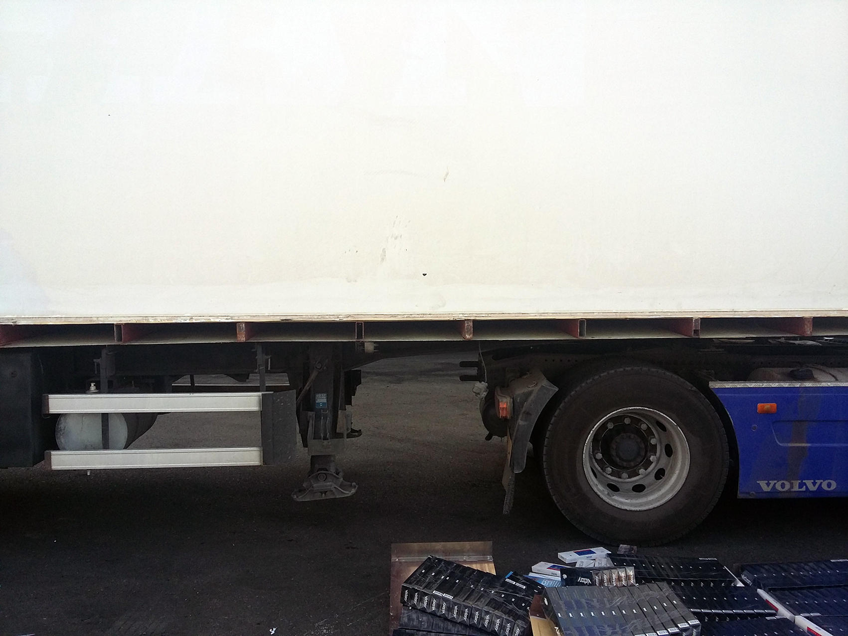Biləsuvar Gömrük İdarəsinin Gömrük hüquqpozmalarına qarşı mübarizə şöbəsinə daxil olmuş məlumat əsasında İdarənin “Qoşa Təpə” gömrük postunda İran İslam Respublikası, Azərbaycan Respublikası və Gürcüstan ərazilərindən tranzit keçməklə İraq Respublikasından Türkiyə Respublikasına yüksüz gedən Türkiyə Respublikası vətəndaşı Yıldırım Süleymanın idarə etdiyi “VOLVO” markalı 47 PC 821/33 AS 368 nömrə nişanlı soyuducu yük avtomobili saxlanmış, gömrük və sərhəd xidməti əməkdaşları birgə yük avtomobilinə əsaslı baxış keçirmişlər. DGK-dən Avtosfer.az-a verilən məlumata görə, baxış zamanı avtomobilin qoşqusunun sağ tərəfdən aşağı hissəsindəki metal lövhələrə fiziki müdaxilə olunduğu nəzərə çarpmışdır. Sonra həmin metal lövhələr açılmış və lövhələrin arxasında, qoşqunun döşəməsinin alt hissəsindəki boşluqlardan malların aşkar edilməsini çətinləşdirən üsuldan istifadə etməklə gömrük nəzarətindən gizlədilmiş, Azərbaycan Respublikasının aksiz markası ilə markalanmamış, 800 ədəd üzərində “GSS”, 1800 ədəd üzərində “Brilliant”, 5000 ədəd üzərində “OSCAR”, 6000 ədəd üzərində “KİNG”, 8000 ədəd üzərində “MM” və 408000 ədəd üzərində “Victory” yazısı olan, ümumilikdə 429600 ədəd siqaretlər aşkar edilmişdir. Faktla bağlı araşdırma aparılır.