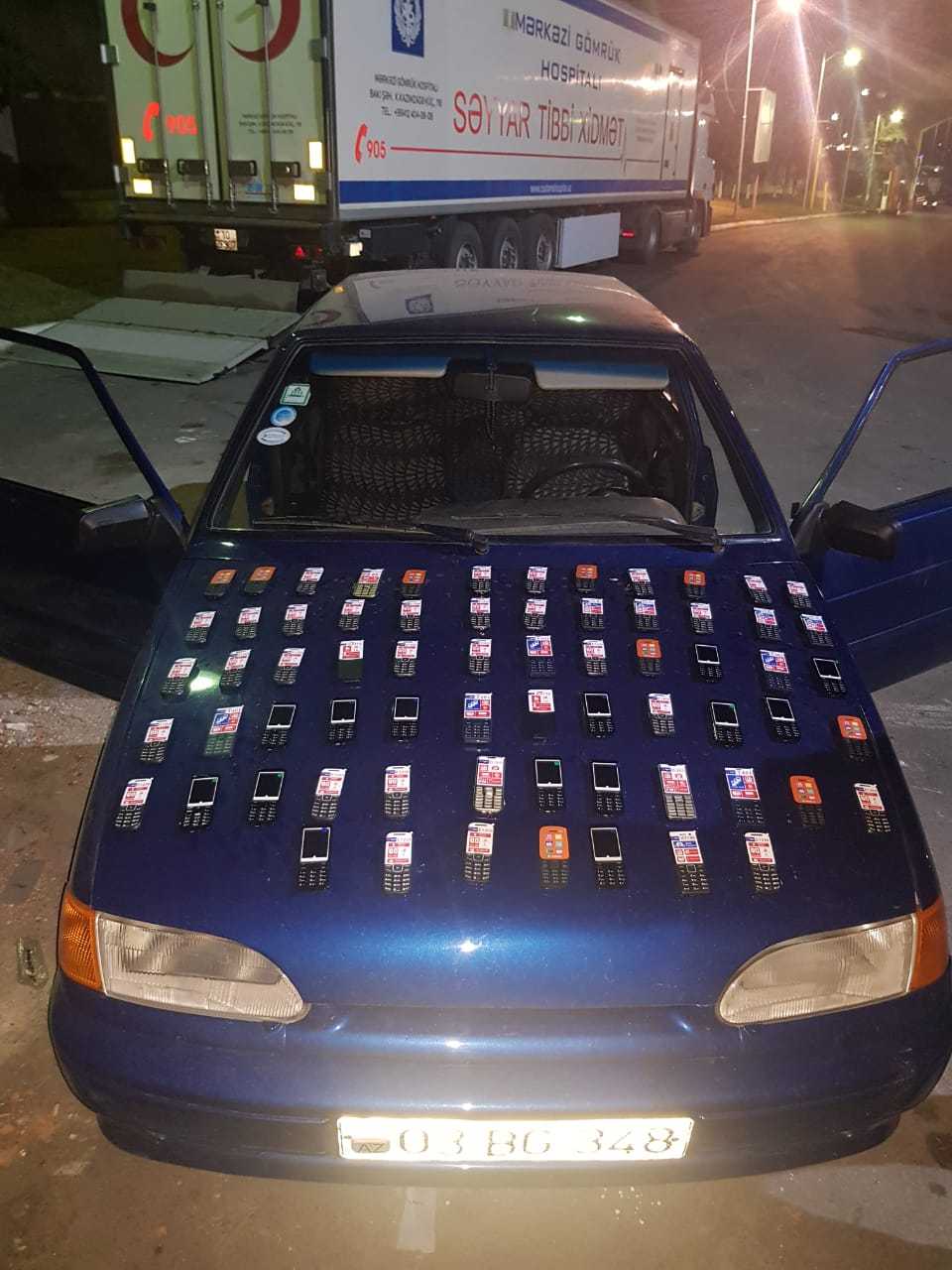 Komitədən Avtosfer.az-a verilən məlumata görə, sorğu-sual zamanı vətəndaş üzərində və idarə etdiyi nəqliyyat vasitəsində gömrük nəzarətindən gizlədilmiş hər hansı predmetin olmadığını bildirib. Lakin baxış zamanı, nəqliyyat vasitəsinin salonunda sağ ön oturacağın ayaqaltısının alt hissəsində xüsusi düzəldilmiş saxlanc yerində, eləcə də arxa təkərlərində gizlədilmiş 9 ədəd üzərində "X-innova" yazısı olan, 44 ədəd üzərində "Kgtel" yazısı olan, 15 ədəd üzərində "Adscn" yazısı olan mobil telefonlar, 135 ədəd qidalandırıcı və mobil telefon üçün 135 ədəd qutu aşkar olunub.