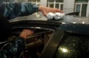 Nəticədə, avtomobilin tavanının ön hissəsində, tavana çəkilmiş üzlüyün altında - üzlüklə metal lövhənin arasına yerləşdirilərək gizlədilmiş, "kopirovka" deyilən kağıza və gümüşü rəngli falqaya bükülmüş 6 ədəd plastik butulka aşkara çıxarılıb.