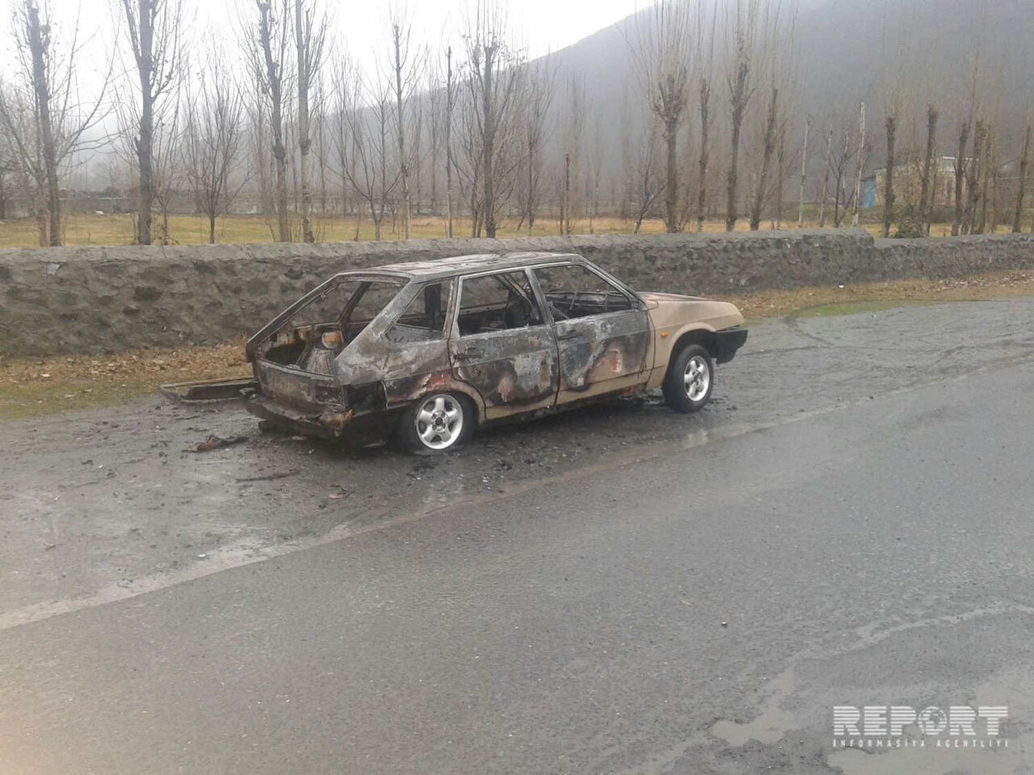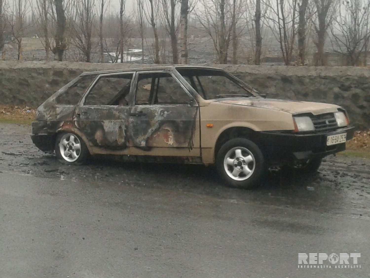Yanğın söndürülüb. Alov nəticəsində avtomobil tamamilə yararsız vəziyyətə düşüb.
