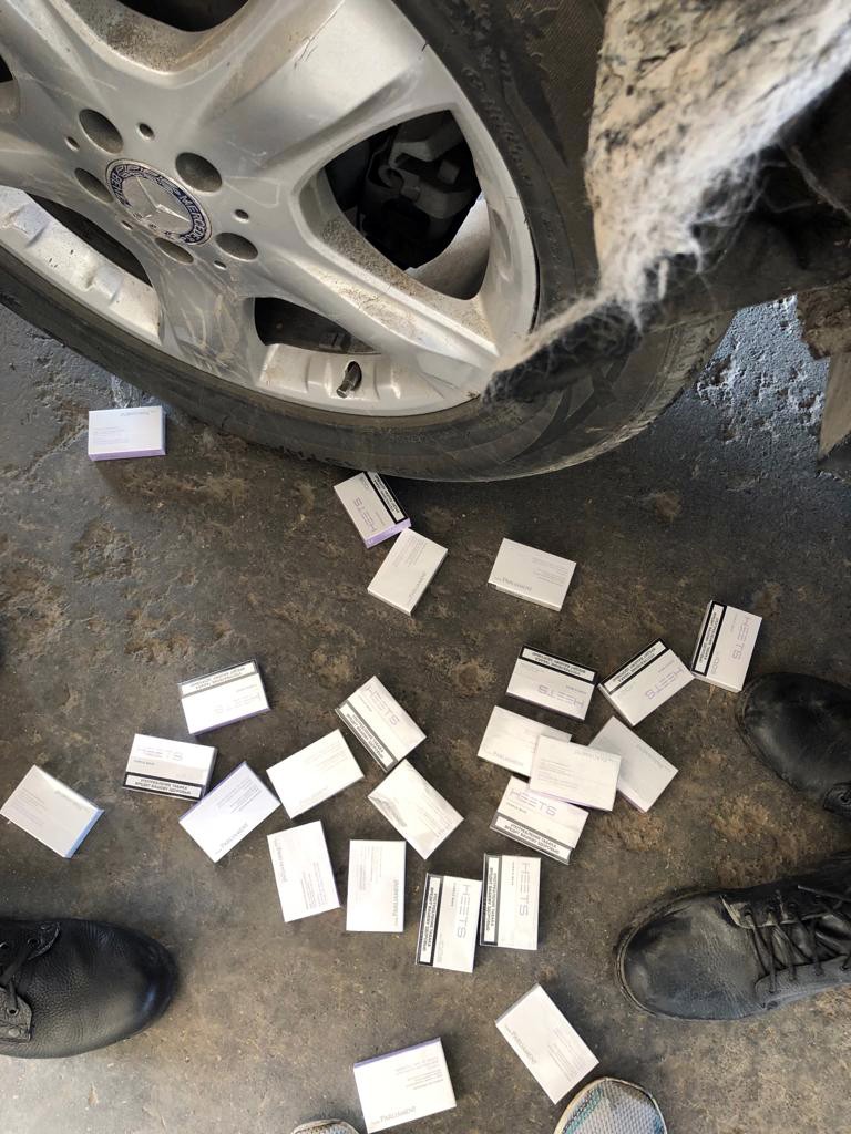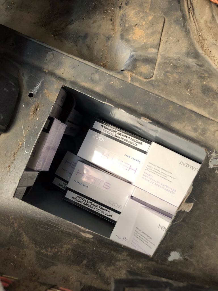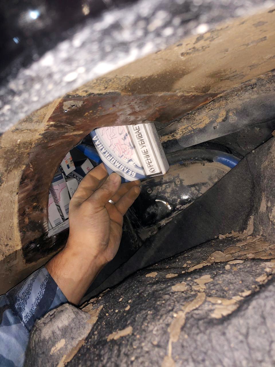 Bu zaman nəqliyyat vasitəsinin arxa sağ qanadının altında 2025 ədəd "Belomorkanal" markalı papiros və avtomobilin alt hissəsindəki hər iki ramanın içərisində 16 000 ədəd "Heets" markalı siqaret aşkarlanıb.