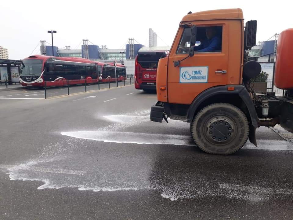 Bakı Beynəlxalq Avtovağzal Kompleksində koronavirus (COVİD-19) infeksiyası ilə mübarizə istiqamətində həyata keçirilən zəruri təhlükəsizlik tədbirləri və dezinfeksiya işləri bütün dövr ərzində mütəmadi olaraq yerinə yetirilir. Avtosfe.az xəbər verir ki, hazırda virusun yayılmasının qarşısını almaq məqsədilə avtovağzal ərazisində, xüsusilə Nəqliyyat Qovşağında dezinfeksiya prosesi davam edir.