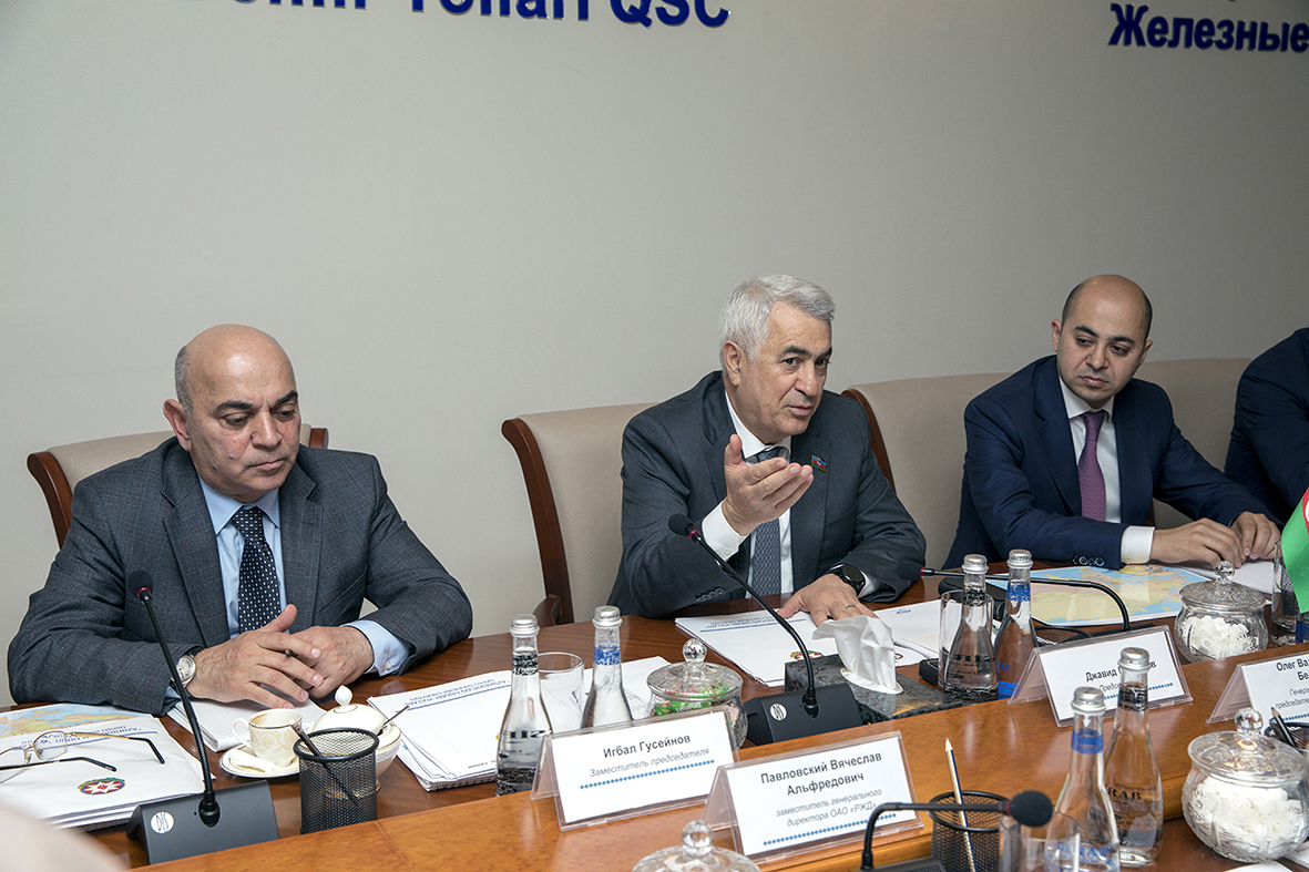 "Azərbaycan Dəmir Yolları” QSC-də davam etdirilən ikitərəfli görüşdə Cəmiyyətin sədri Cavid Qurbanov çıxış edərək Azərbaycanın nəqliyyat-logistika imkanları, beynəlxalq nəqliyyat dəhlizləri barədə ətraflı məlumat verib. “Şimal-Cənub” Beynəlxalq Nəqliyyat Dəhlizindən danışan natiq bildirib ki, bu dəhliz yalnız İran, Azərbaycan və Rusiyanın deyil, bu marşrut ilə ixrac-idxal əməliyyatlarını həyata keçirərək ticarət dövriyyəsini artıran digər region ölkələrinin də inkişafında əhəmiyyətli rol oynayacaq, ölkələrimizin iqtisadi-ticarət əlaqəsini genişləndirəcək