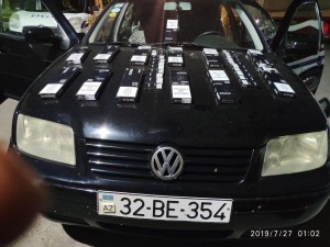 Baxış zamanı avtomobillərin gizli saxlanc yerlərindən 11 200 ədəd "King" markalı siqaretlər, hər biri 1 litr olmaqla 10 ədəd "Nemiroff" markalı spirtli içkilər aşkarlanıb.