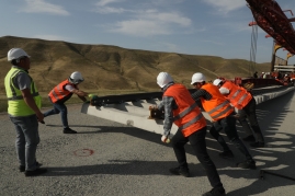Azərbaycanın ən uzun dəmir yolu körpüsü Həkəri çayı üzərində salınır - VİDEO