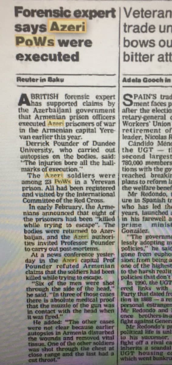 Onlar iddia edirdilər ki, sözügedən şəxslər guya qaçış zamanı öldürülmüşdü. Ancaq Böyük Britaniyanın Dandi Universitetinin patoloqu Derrik Paunder bu iddiaları təkzib edən faktları sadalayıb.