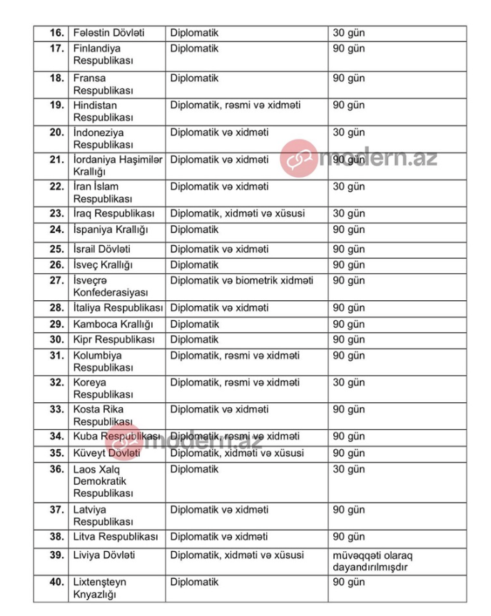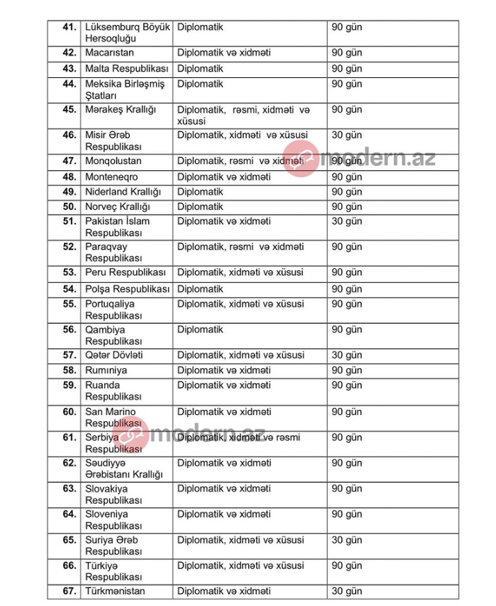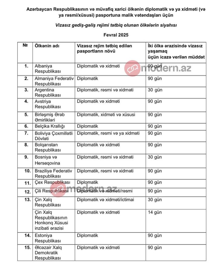 - Azərbaycan Respublikasının və müvafiq xarici ölkənin diplomatik və ya xidməti (və ya rəsmi/xüsusi) pasportuna malik vətəndaşları.