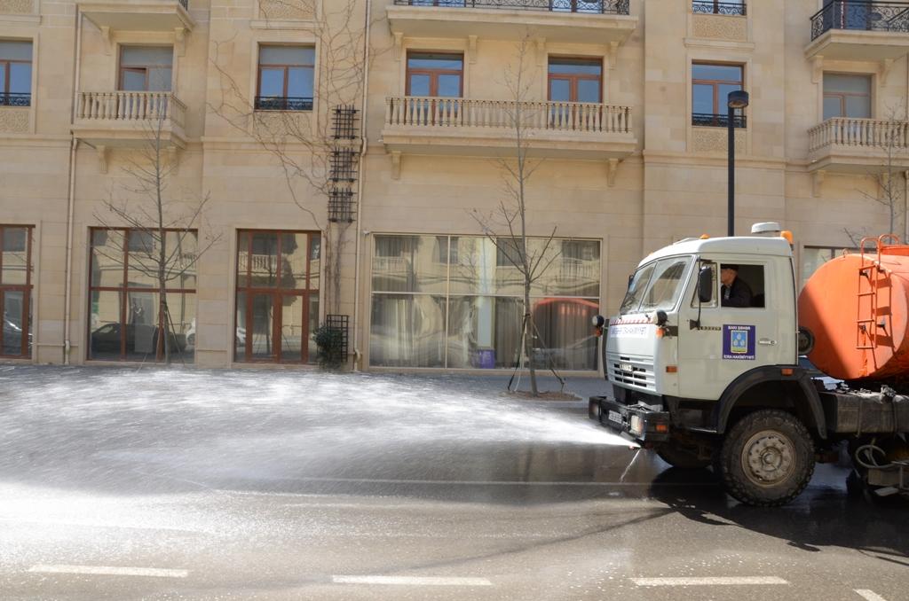 Koronavirusa yoluxma hallarına yol verilməməsi və onun qarşısının alınması məqsədi ilə Bakı şəhərində həyata keçirilən genişmiqyaslı tədbirlər çərçivəsində Bakı Ağ Şəhərin ərazisindəki küçələrdə xüsusi kommunal texnikalar vasitəsilə mütamadi olaraq dezinfeksiya tədbirləri həyata keçirilir. Küçə və prospektlərinin kənarları və yollar və səkilər xüsusi dezinfeksiyaedici maddərlə yuyulur. Ağ Şəhərin Xəqani Rüstəmov, Mərkəzi Bulvar, 1-ci Yaşıl Ada və digər təhvil verilmiş küçələri də xüsusi diqqət mərkəzində saxlanılır.