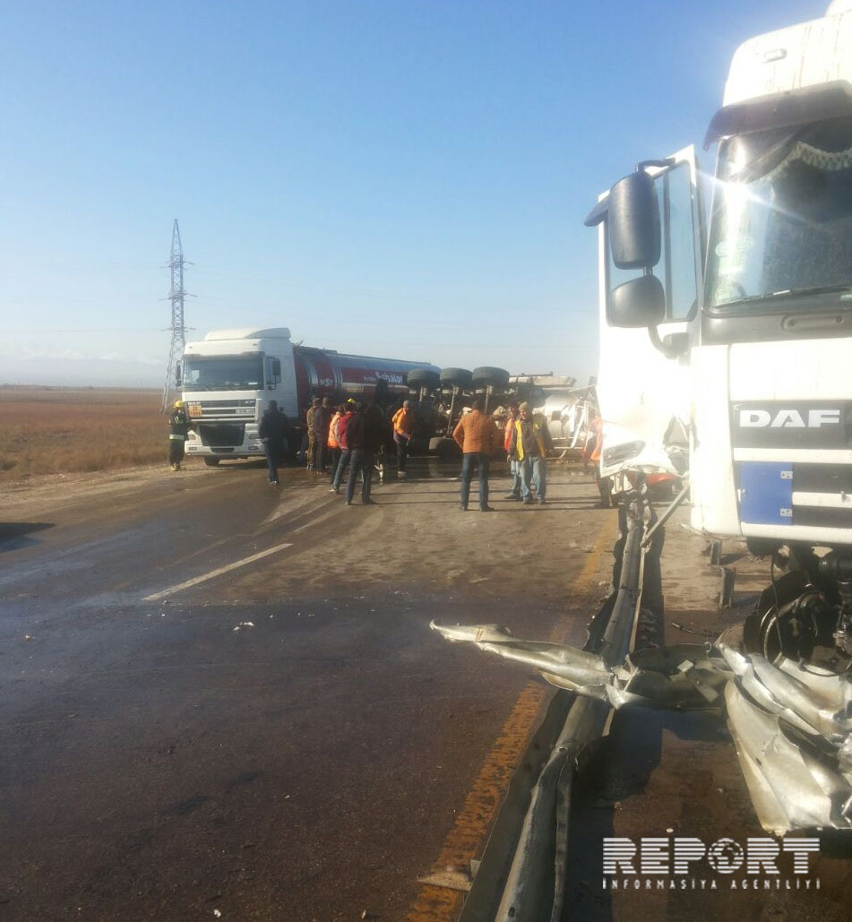 Hadisə nəticəsində ölən və xəsarət alan olmasa da, yük ətrafa dağılıb və yol təsərrüfatına ziyan dəyib. Qəzaya yük maşınının sürücüsünün sükan arxasında yuxulamasının səbəb olduğu ehtimal edilir.