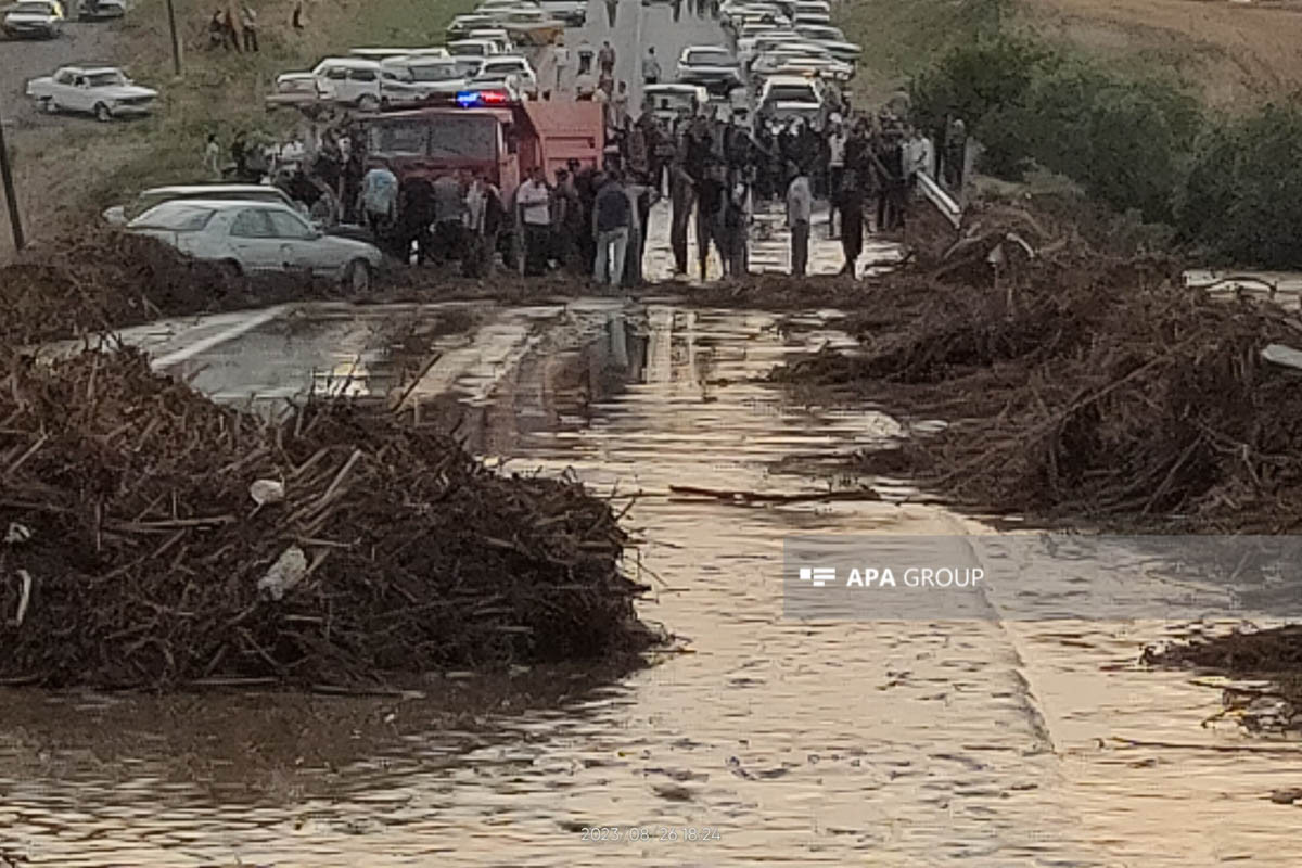 Dünən sel səbəbindən bağlanan Bakı-Şamaxı-Yevlax avtomobil yolu bu gün qismən bərpa olunub.